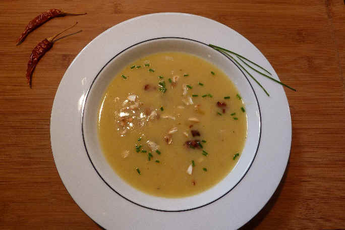 - 2 EL Olivenöl, 0,5 l Brühe, 1 Chilischote,