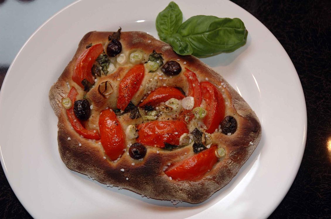 Focaccia mit Tomaten und Oliven